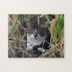 This puzzle shows a darling feral cat who was discovered lying in a plant in my front yard. He had made himself a little bed at the base of this plant where he could find warmth, comfort, and a place to rest. Lying in his plant bed is a beautiful gray striped feral cat with little white paws, white chest and sleepy eyes. A tiny snail creeps by in front of this adorable feral cat unnoticed. This puzzle is perfect for every cat lover.