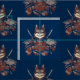 Cat Samurai Warrior Japanese Fabric