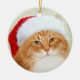 Long haired orange tabby cat in a santa hat and beard cat lovers holiday ornament