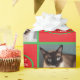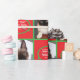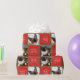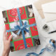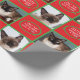 Wrapping paper for the Cat Santa Claws Holiday collection. In one thought bubble, the cat claims that "It does not matter whether he's been NAUGHTY or NICE." Then in the second thought bubble, he says, "ONLY THAT YOU'VE BEEN NICE TO ME." Colored with bright reds and greens, this wrapping paper is perfect for pet presents or children who'd enjoy seeing their cat's face on their Christmas presents. Customize this wrapping paper with two pictures of your own cat. Each picture measures 3"x3".