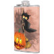 Cat Scared by Pumpkin Fun Halloween Character Flask