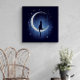 Cat silhouette swinging from the crescent moon canvas print