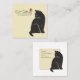 Big black cat business card features two whimsical typefaces that complement each other against a pale butter cream yellow background. A square business card format for a cat sitter or boarding business. Personalize on the reverse side of the card.