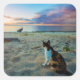 Cat Sitting On A Beach Square Sticker