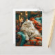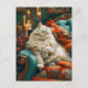 Cat Sleeping on Cozy Chair by Candlelight Postcard