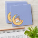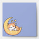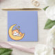 Cute and whimsical envelope design featuring a cartoon orange and white kitty cat peacefully sleeping on a bright yellow crescent moon. The background is a calming blue sky, adorned with three glowing yellow stars. Perfect for cat lovers, this adorable design captures a dreamy, cosy vibe.