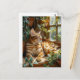 Cat Sleeping on Window Sill Among Flower Vines Postcard