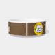 Add your pet's name to this fun bowl that features a cartoon style illustration of a cat smiling. Brown background.