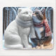 Cat Snuggling With a Snow Cat Sculpture Mouse Pad