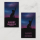 Cat hangover kitty stars sky moon night aurora northern lights atmospheric mysterious art catch hunting dream catcher darkness dawn silhouette contrast moonlight shine colors red blue black magical mystical fantasy art