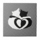 This is a fun modern design featuring two cats, black and white cuddled up with tails shaped into a heart. The backdrop is black white chequers. It's a modern design for cat lovers and cat owners.