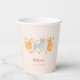 Cute cat theme birthday party paper cup featuring illustration of cats with party hats and pink flowers.