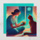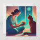 A woman sits on the floor, holding a candle in her hand, with a cat sitting across from her. Together, they share a secret, spiritual connection, as if the cat were her therapist. This whimsical and humorous fantasy art piece, created by Lumirala and Magic Media AI, captures the unique bond between the woman and her feline friend. Available in various sizes, this flat card is perfect for adding a touch of enchantment and humor to your message.It’s an ideal card for cat lovers, art enthusiasts, and anyone who appreciates the mystical and magical aspects of life.