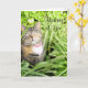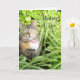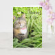 Front of card says "Thinking of You", with a photo of a beautiful calico Cat who is gazing at the sky while sitting in a lush garden. This card can be customized if you choose.