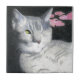 A pencil and pastel drawing of an adorable one-eyed gray tabby cat adorns this tile!