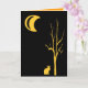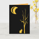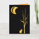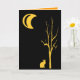 This Halloween card features a golden yellow cat under a bare gold tree under a stylized moon, looking right out at you against a deep black background.