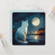 A cat sit under the midnight moon by a lake imagining who might sit on the other side. Printed on a textured paper with envelope. Designed by the Ziponline Cat Art store on Zazzle - Image ©2023 Brian K Prothro