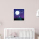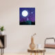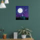A small cat sits quietly under the full moon's glow as it gazes out toward the city lights on the horizon. Above is a beautiful night sky filled with twinkling stars. One falls, leaving behind a trail of light. It can be customized by adding your own images and text.