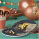 Set of paper plates, each with a vintage Halloween image showing a somewhat fraught cat screeching a warning to the wide-eyed owl in the tree: "Beware! Take care! For Ghosts are seen on Halloween."