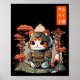 Cat Warrior Japanese Writing Anime Art for kawaii Poster