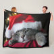 Cat Wearing Santa Hat Fleece Blanket
