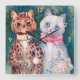 Cat Wedding, Marriage, Bride, Louis Wain Square Wall Clock