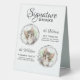 This table tent sign is the perfect size for our tables and easy to read. I also like the material it is made with and no worries about it falling or sliding. Just perfect! Everything about this card is perfect. I like that it says what we want on the front and on the back we were able to personalize a message for our guests.