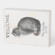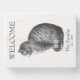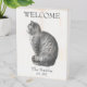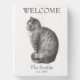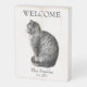 A perfect way to welcome guests to your home! This farmhouse style sign is made using an adorable gray kitty cat graphic on distressed white wood background making it a sweet accent for any farmhouse or country style home. Personalize it with your desired name and date.