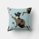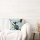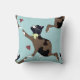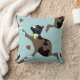 Cat with a bow catches a ladybug. throw pillow
