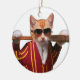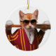 Cat with baseball bat ceramic ornament