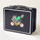 This is a standard metal lunchbox that appears to work just fine. We designed this box ourselves with an uploaded photo and custom text on the front and back. It looks absolutely beautiful except the front of the lunchbox is not centered like it shows in the photo. The print borders don't align with the inset flat part of the box where the preview photo online showed it perfectly centered in there. The back looks nice and centered though.