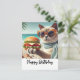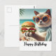 Cat with Hamburger Happy Birthday Postcard