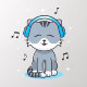 Cat with Headphones Wall Decal