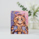 A fine art postcard featuring an animal illustration by the English artist Louis Wain (1860-1939), who is best known for his cat portraits This particular illustration showcases a surprised ginger-colored mother cat holding three kittens, two of which are blue, set against a wallpaper background.