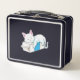 This is a standard metal lunchbox that appears to work just fine. We designed this box ourselves with an uploaded photo and custom text on the front and back. It looks absolutely beautiful except the front of the lunchbox is not centered like it shows in the photo. The print borders don't align with the inset flat part of the box where the preview photo online showed it perfectly centered in there. The back looks nice and centered though.