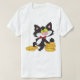 This design is a cat with money. The cat has its paws on some gold coins. This cat with money design looks great on this Mens T-Shirt