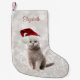 Cat With Santa Hat ,Glittery Bokeh Small Christmas Stocking