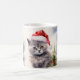 A cute kitty getting ready for Christmas with their santa hat and decorations