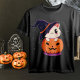 Cat with witch hat in Halloween Jack-O-Lantern T-Shirt