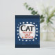 An irreverent and cute typographic animal design that says "Cat Would Like A Word". It features black and red text on a white rectangle with funky, playful white dots surrounding it, all on a blue background.