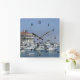 Catalina Island Wall Clock shows a photo of the harbor with boats in front of the casino on Catalina Island.