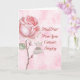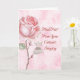 Cataract surgery card with a large pretty pink watercolor rose on a lighter rose floral background.