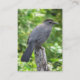 This artist trading card features a Gray Catbird perched on a fence post.. He is a gray bird with a black cap and bright rusty feathers under the tail. Gray Catbirds are relatives of mockingbirds and thrashers, and they share that group’s vocal abilities, copying the sounds of other species and stringing them together to make their own song. Their call sounds like the meow of a cat.