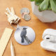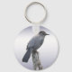 This keychain features a Gray Catbird perched on a fence post.. He is a gray bird with a black cap and bright rusty feathers under the tail. Gray Catbirds are relatives of mockingbirds and thrashers, and they share that group’s vocal abilities, copying the sounds of other species and stringing them together to make their own song. Their call sounds like the meow of a cat.