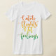 My overall review is that the T-shirt is nice, it fits true to size however the font is significantly smaller than advertised and you can't read it. The printing is unreadable and there is a strain to read it. It does not look like the advertised product. Maybe the shirt color is darker or a larger more visible font should have been used. Photos with and without flash and font is barely legible.
