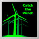 Catch the Wind! - black poster with bright green windblown lettering and a wind turbine cluster graphic.