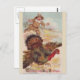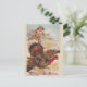 Cute Vintage Turkey running and Pilgrim boy chasing, fun Art. Thanksgiving Greeting Card with old fashioned Thanksgiving Day Greetings. on the bottom, Cute and funny postcard.