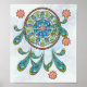 A beautiful turquoise mandala dream catcher design with blossoms on a soft pastel background.