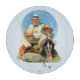 Artist: Norman Rockwell | Farmboy watches as businessman pulls in catch with his pole