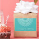 Elegant, modern design of mandala inspired whisk logo on turquoise blue background.